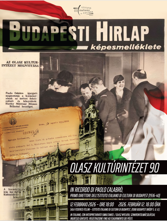 Szeretettel meghívjuk Önöket a Budapesti Olasz Kultúrintézet alapításának 90° évfordulója alkalmából megrendezésre kerülő múltidéző eseményre.
